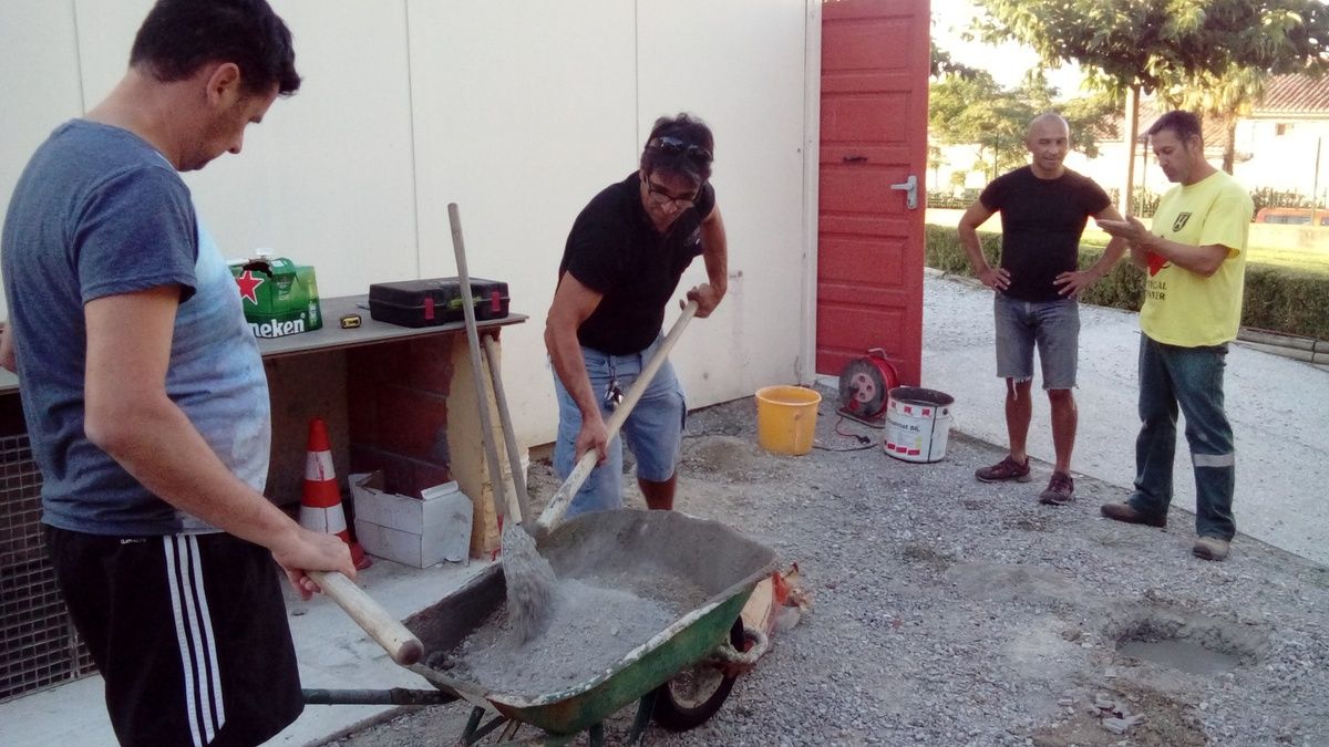 Mais une priorité avant toute rencontre sportive....la réalisation d'une pergola pour les longues soirées d'hiver où nos valeureux guerriers vont devoir braver le froid et la pluie pour concocter les quelques grillades qui suffisent à leur bonheur.